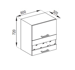 Кухонна шафка верхня В60БСк (h-720) кухні Марта Світ Меблів — оснащена двома дверима містить два закритих відділення, де можна розмістити різне кухонне приладдя. Виготовляється з якісного ламінованого ДСП товщиною 16 мм у поєднанні на вибір - корпусу: «білий», «дуб сонома», «графіт», «попелястий» та «дуб золотий крафт» з глянцевими фасадами «артвуд світлий глянець», «білий глянець», «бетон темний глянець», «графіт глянець», «дакар глянець», «дуб артізан глянець», «дуб борас глянець», «дуб сонома глянець», «дуб трюфель глянець», «дуб енгрейн необроблений глянець», «індастріал глянець», «індиго глянець», «капучино глянець», «крем глянець», «лайм глянець», «лемонграс глянець», «попелястий глянець», «світлий беж глянець», «вугільний камінь глянець», «чорний глянець», «шовковий камінь глянець». Кухня Марта Світ Меблів – унікальний та універсальний кухонний гарнітур, який дозволить створити кухню своєї мрії.