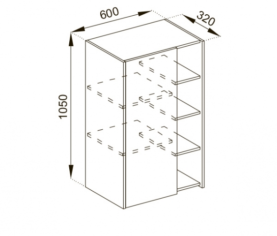 шафка верхня містить одне закрите відділення з двома полицями всередині та відкриті полиці |