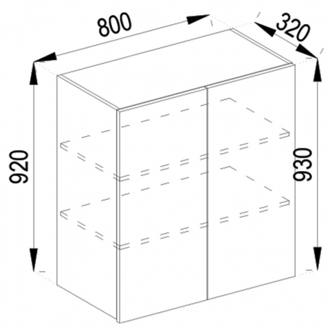 шафка верхня з двома дверима містить одне закрите відділення з полицями всередині |