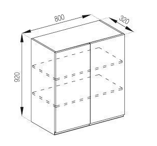 шафка верхня з двома дверима, містить одне закрите відділення з двома полицями всередині |