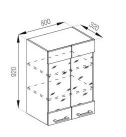 шафка верхня з двома дверима, містить одне закрите відділення з двома полицями всередині |