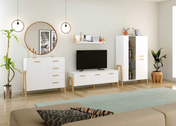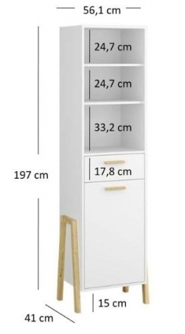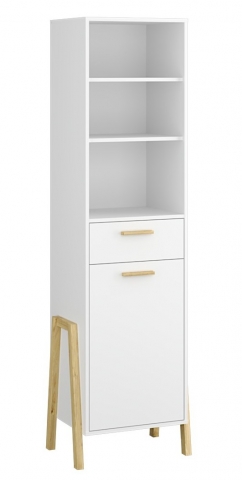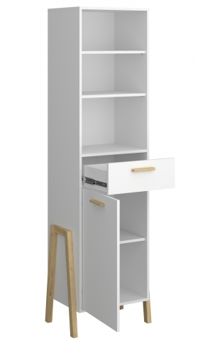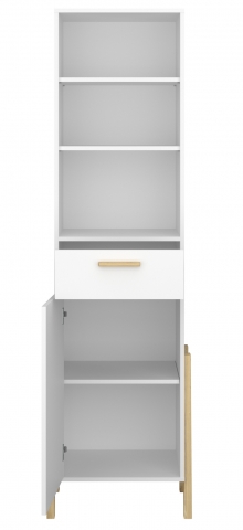 Чарівний стелаж 1D1S Бель біла ВМВ, яка впишеться практично в будь-який інтер'єр вітальні, спальні, молодіжної кімнати та домашнього кабінету, ставши джерелом натхнення і надавши інтер'єру оригінального характеру. Стелаж містить одну висувну шухляду, три відкриті та одне закрите відділення з полицею всередині. Меблі привертають увагу своїм неординарним дизайном та цікавою формою; незвичайною асиметричною композицією; первозданним білим кольором; подовженими зручними ручками і високими ніжками, що виступають з боків, виготовленими з натурального дерева; фірмовими комплектуючими. Колекція Belle VMV порадує всіх любителів інноваційних ідей, а також сучасних, оригінальних та елегантних інтер'єрів, тих, хто цінує розкіш та комфорт у своєму будинку.