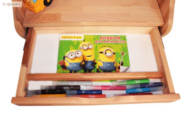 Стелаж k700 - невід'ємний атрибут дитячої кімнати. Виконаний з натурального дерева (бук) та покритий масловоском. Має 3 місткі, висувні шухляди і 5 полиць для книг та іншого дитячого приладдя. Верхня полиця із двома перегородками. Завдяки оригінальному дизайну стелаж підійде в будь-який інтер'єр дитячої кімнати.