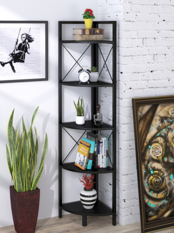 стелаж містить п’ять відкритих полиць |