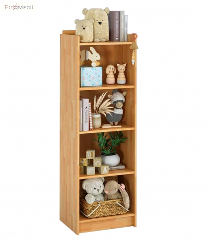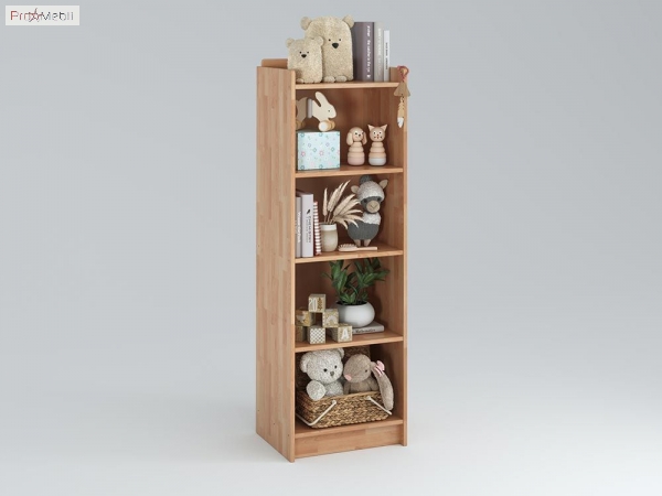 Практичний та місткий стелаж Whity Клен вдало поєднує в собі функціональність та сміливий дизайн та призначений не тільки для зберігання книг, але й для інших речей: коробок, ваз, рамок, іграшок та інших елементів декору. Відкритий стелаж містить три полиці, які разом із корпусом утворюють п’ять секцій для зберігання. Корпус та фасадні частини виготовляються із сертифікованої FSC натуральної деревини - бук, відшліфованої до гладкої поверхні та покритої лляною олією виробника KNEHO. Гарні та сучасні, затишні та міцні, екологічно чисті та натуральні дитячі меблі Whity Клен – ось правильний вибір на користь здоров'я, безпеки та сучасного стилю інтер'єру найважливішої кімнати вашої квартири.