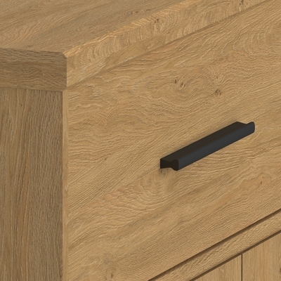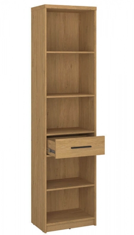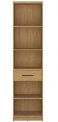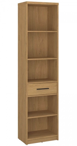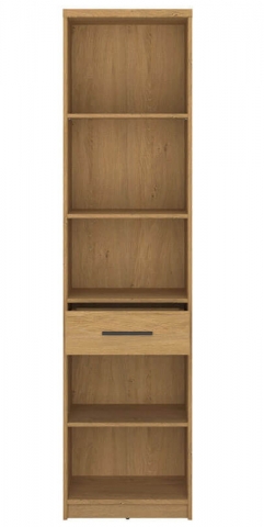 Стелаж відкритий 1S/50 Паві ВМВ, який зачарує любителів природної елегантності та універсальності, створивши витончене оточення у вітальні, спальні, молодіжній кімнаті, кабінеті та навіть у передпокої. Стелаж містить одну висувну шухляду та п’ять відкритих відділень. Меблі привертають увагу унікальним стилем; привабливим теплим відтінком «дуб кам'яний» із чіткою дерев'яною текстурою; простотою геометричних форм; потовщеними масивними боковинами та стільницями; контрастними подовженими пластиковими ручками чорного кольору; стійкими ніжками; фірмовими комплектуючими. Pavi VMV чудовий вибір для людей, які хочуть створити затишну та стильну атмосферу у своєму будинку.