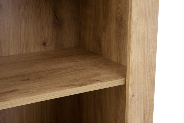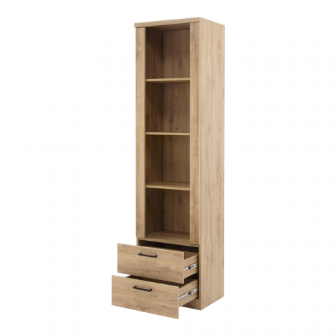 Елегантний непідвладний часу стелаж відкритий високий 2S Doorset Mebel Bos, який містить дві висувні шухляди та відкриті полички. Стелаж привертає увагу вдалим поєднанням класики та простати виконання; теплим відтінком дуб наварра зі структурою необробленого дерева, з видимими кільцями та сучками; довгастими пластиковими ручками, чорного кольору; фірмовими комплектуючими. Завдяки меблям Дорсет Меблі Бос Ви створите затишну, домашню атмосферу – ідеальну для відпочинку та зустрічей з друзями.