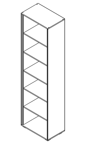 стелаж містить шість відкритих відділень |