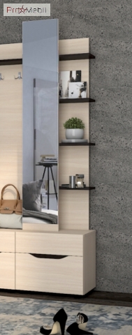 Відкритий стелаж Аякс Майстер Форм відрізняється функціональністю і конструктивної варіативністю, чудово підійде для спальні, дитячої або передпокою. Стелаж з дзеркалом містить тумбочку з одним закритим відділенням і висувною шухлядою, а також чотири відкриті полички, для зберігання різного роду речей. Для зручності стелаж може бути як правостороннім, так і лівостороннім. Корпус і фасадні частини виготовлені з якісного ламінованого ДСП, в безпрограшному поєднанні світлих і темних відтінків: дуб молочний або дуб сонома з венге магія. Торцеві поверхні всіх внутрішніх і зовнішніх елементів виробів облицьовані пластиковою кромкою, надаючи меблям завершений гарний і доглянутий вигляд. Меблі Аякс Майстер Форм привертають увагу своїм легким і сучасним дизайном; простими прямокутними формами; застосуванням двокольорової гами; відсутністю традиційних ручок для відкривання, їх роль виконують виїмки в фасаді, декоровані з внутрішнього боку контрастною планкою; фірмовими комплектуючими: телескопічними напрямними і фірмовими завісами, які забезпечують максимальний комфорт у використанні. Меблі Аякс Майстер Форм чудово прикрасять інтер'єр Вашого будинку і дозволять підкреслити Вашу індивідуальність.