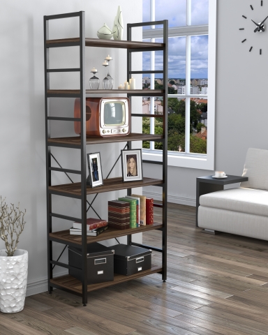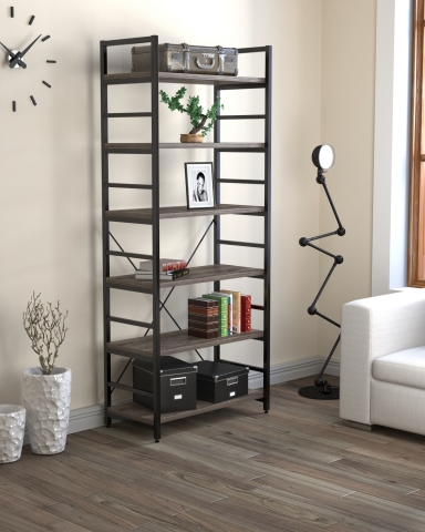 стелаж містить шість відкритих полиць |