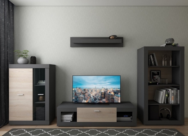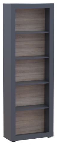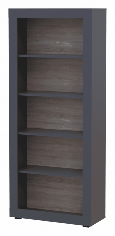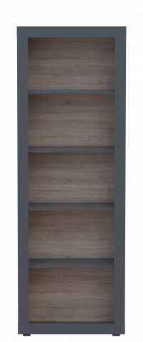 Витончений стелаж високий Дана Doros, допоможе створити простір, який буде візуально привабливим та зручним для всіх, хто відвідує вітальню. Стелаж має відкриті полиці, де з легкістю можна зберігати різні речі, починаючи з книг, фоторамок і статуеток, сувенірів, і закінчуючи декоративними квітковими рослинами. Стелаж виготовляється з ламінованого ДСП (Kronospan) товщиною 16 мм у поєднанні протилежних відтінків: елегантного та загадкового кольору "графіт" з теплим та заспокійливим відтінком деревної текстури "дуб сонома". Модульні меблі Дана Doros поєднує різні елементи, створюючи унікальний та неповторний інтер'єр.