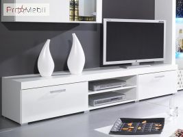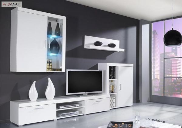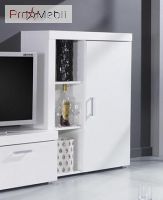 Вітальня Samba Cama - виразний і оригінальний набір від польської фабрики Cama Meble, для облаштування яскравої і сучасної вітальні. Корпус виконаний з ДСП високої якості "білого матового" кольору. Фасади виконані з МДФ у кольорі "білого глянцю". Характерними особливостями меблів Самба Cama є неповторний дизайн, виконаний в стилі мінімалізму і конструктивізму, стильні і зручні подовгуваті пластикові ручки, надійна і практична фурнітура від німецького виробника Hettich забезпечує максимально комфортне використання, високоміцне загартоване скло товщиною 8 мм, (біле, блакитне, червоне або зелене) або кольорове RGB-підсвічування (16 кольорів) з пультом керування, за допомогою якого можна змінювати кольори, залежно від Ваших переваг на даний момент. Гарнітур Samba Cama відрізняється підвищеною місткістю і функціональністю, і включає в себе: дві вітрини - настінну і підлогу, в яких можна розмістити велику кількість речей; стильну ТВ-тумбу і багатофункціональну полицю. Широкий асортимент меблів Samba Cama дозволяє створити унікальний, стильний і сучасний інтер'єр вітальні. Купити меблі в вітальню Samba Cama можна в нашому інтернет-магазині ProMebli.ua з доставкою по всій Україні. Оплата за готівковий і безготівковий розрахунок, у кредит, розстрочку або оплату частинами від ПриватБанк.