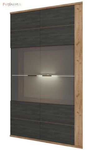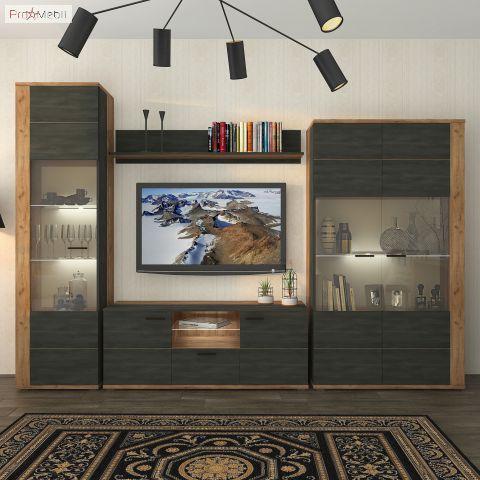 Гарнітур у вітальню Адель Сокме - стильний і оригінальний набір меблів від фабрики Сокме, для облаштування сучасної вітальні. Корпус і фасадні частини виготовлені з якісного ламінованого ДСП товщиною 16 мм, в гармонійній комбінації кольорів: "дуб крафт табако/північне дерево". Торцеві поверхні всіх внутрішніх і зовнішніх елементів виробів облицьовані крайкою ABS товщиною 0,5/1 мм, надаючи меблям завершений гарний і доглянутий вигляд. Колекція привертає увагу сучасним стилем; поєднанням двох фактурних відтінків; дизайнерськими довгастими пластиковими ручками; міцною підставою, що сприяє максимальній стійкості; фірмовими комплектуючими: телескопічними напрямними і завісами без дотягу Hafele, які забезпечують максимальний комфорт у використанні. В гарнітур увійшли: виразна ТВ тумба; підвісна полиця; функціональні вітрини в оригінальному виконанні фасадів в поєднанні зі склом бронзового кольору надають приємної темно-димчатої тональності, додатково можуть комплектуватися led-підсвічуванням. Всі модулі можна комбінувати один з одним в будь-якої конфігурації, створюючи індивідуальний інтер'єр в своєму будинку. Меблі Адель Сокме подарують вам задоволення і естетичну насолоду і створять в будинку затишне оточення. Купити меблі Адель Сокме можна в нашому інтернет-магазині ProMebli.ua з доставкою по всій Україні. Оплата за готівковий і безготівковий розрахунок, в кредит і розстрочку.