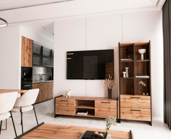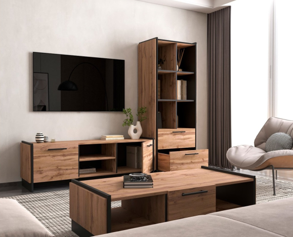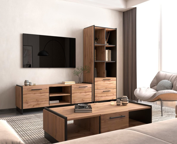Стінка Amino Mebel Bos - це сміливий виклик буденності, створена для тих, хто мріє зробити свій дім по-справжньому унікальним і комфортним, перетворивши простір на комфортне місце для життя. Стінка привертає увагу елегантною простотою, яка легко впишеться в будь-який сучасний інтер'єр; чистими лініями, простими формами та збалансованим поєднанням матеріалів; унікальним потовщеним подвійним корпусом із вираженим контрастом, що плавно перетікає в стійку основу з мініатюрними пластиковими ніжками; металевими довгастими ручками чорного кольору; фірмовими комплектуючими: кульковими напрямними повного висування та петлями, що забезпечують плавне й безшумне відчиняння й зачиняння дверцят і шухляд. Стінка складається зі стелажа для зберігання книжок, декоративних елементів або особистих колекцій і ТВ тумби для розміщення телевізора та супутньої техніки. Меблі Аміно Меблі Бос створені для тих, хто хоче оточити себе не тільки стильними, а й функціональними меблями, що стануть важливою частиною життя, завдяки чому Ваш дім набуде унікального характеру, в якому кожна деталь має значення. Купити меблі Amino Mebel Bos можна в нашому інтернет-магазині ProMebli.ua з доставкою по всій Україні. Оплата за готівковий і безготівковий розрахунок, в кредит, розстрочку або оплату частинами від ПриватБанк.