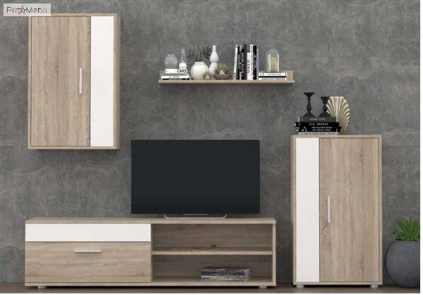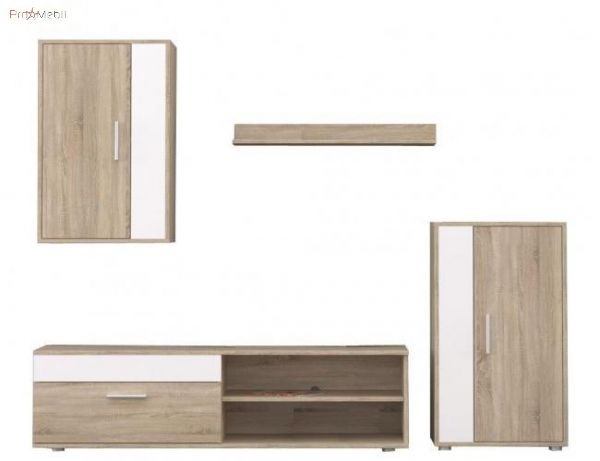 Стінка Барато Міні Гербор - стильна, практична колекція від української меблевої фабрики Gerbor - холдинг, для облаштування інтер'єру вітальні відповідно до ваших уподобань. Корпус і фасади виготовляються з якісного ламінованого ДСП, у поєднанні кольорів «німфея альба» з текстурою дерева «дуб сонома», що додадуть особливого шарму колекції. Меблі Барато Міні Gerbor характеризуються стильним дизайном, простими строгими формами і чіткими лініями, довгастими зручними ручками.