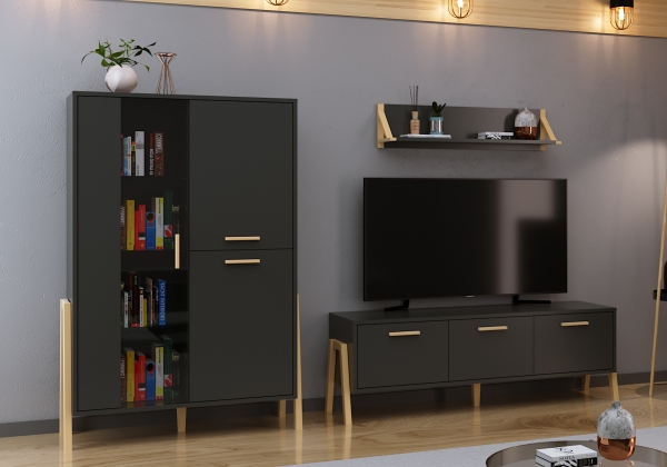 Модульна стінка Бель антрацит ВМВ - набір від української меблевої фабрики VMV Holding, є дивовижним поєднанням вишуканого смаку, стилю та елегантності, яка обов'язково підкорить навіть найвибагливіших клієнтів і легко створить модний і функціональний простір у вітальні. Корпус та фасадні частини виготовлені з якісного ламінованого ДСП Kronospan товщиною 16 мм у класичному антрацитовому відтінку. Меблі привертають увагу своїм неординарним дизайном та цікавою формою; незвичайною асиметричною композицією; подовженими зручними ручками і високими ніжками, що виступають з боків, виготовленими з натурального дерева; фірмовими комплектуючими: петлями Hafele та кульковими напрямними повного висування, забезпечуючи максимальну зручність у використанні. Стінка включає привабливу вітрину, яка має дверцята зі вставкою із тонованого загартованого скла, тумбу під телевізор та практичну полицю. Поєднавши всі модулі в єдине ціле, Ви облаштуєте естетичну вітальню. Колекція Belle VMV порадує всіх любителів інноваційних ідей, а також сучасних, оригінальних та елегантних інтер'єрів, тих, хто цінує розкіш та комфорт у своєму будинку. Купити меблі Бель ВМВ можна у нашому інтернет-магазині ProMebli.ua з доставкою по всій Україні. Оплата за готівковий та безготівковий розрахунок, у кредит чи розстрочку.