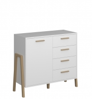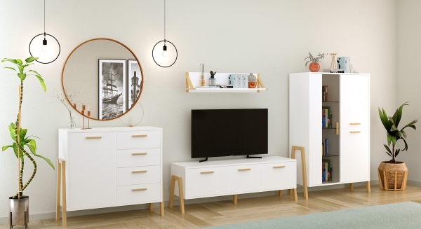Модульна стінка Бель біла ВМВ - чарівний набір меблів від української меблевої фабрики VMV Holding, які впишуться практично в будь-який інтер'єр вітальні, ставши джерелом натхнення і надавши інтер'єру оригінального характеру. Корпус та фасадні частини виготовлені з якісного ламінованого ДСП Kronospan товщиною 16 мм у первозданному білому кольорі. Меблі привертають увагу своїм неординарним дизайном та цікавою формою; незвичайною асиметричною композицією; подовженими зручними ручками і високими ніжками, що виступають з боків, виготовленими з натурального дерева; фірмовими комплектуючими: петлями Hafele та кульковими напрямними повного висування, забезпечуючи максимальну зручність у використанні. Стінка включає всі необхідні елементи, а це: привабливу вітрину, яка має дверцята зі вставкою з тонованого загартованого скла, функціональний комод, тумбу під телевізор і практичну полицю. Поєднавши всі модулі в єдине ціле, можна вдало облаштувати вітальню. Колекція Belle VMV порадує всіх любителів інноваційних ідей, а також сучасних, оригінальних та елегантних інтер'єрів, тих, хто цінує розкіш та комфорт у своєму будинку. Купити меблі Бель ВМВ можна у нашому інтернет-магазині ProMebli.ua з доставкою по всій Україні. Оплата за готівковий та безготівковий розрахунок, у кредит чи розстрочку.