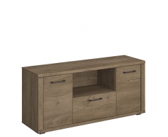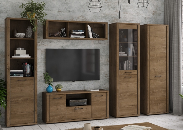 Модульна стінка Кордан ВМВ - елегантний набір меблів від української меблевої фабрики VMV Holding, для неповторного простору у вітальні, що поєднує в собі функціональність та естетику, створюючи ідеальне місце для відпочинку та сімейних зустрічей. Корпус та фасадні частини виготовляються з високоякісного ламінованого ДСП Kronospan товщиною 16 мм у глибокому темному відтінку «дуб бургундський» із шикарним дерев'яним малюнком. Меблі привертають увагу елегантністю та неповторним шармом; масивними потовщеними боковинами; довгастими металевими ручками чорного кольору, надаючи характерного контрасту та сучасного вигляду; стійкими, ледь помітними пластиковими ніжками; фірмовими комплектуючими: петлями Hafele та кульковими напрямними повного висування, які забезпечують максимальну зручність у використанні. Модульна стінка включає привабливу вітрину, яка має дверцята зі вставкою із тонованого загартованого скла, тумбу під телевізор, місткий пенал та стелаж, та практичну навісну шафку. Завдяки різноманітності елементів Ви легко зможете створити, індивідуальний інтер'єр, цілісний та гармонійний простір у своєму будинку. Меблі Cordan VMV забезпечать комфорт та функціональність, надавши елегантності та характеру будь-якій вітальні. Купити меблі Кордан ВМВ можна у нашому інтернет-магазині ProMebli.ua з доставкою по всій Україні. Оплата за готівковий та безготівковий розрахунок, у кредит чи розстрочку.