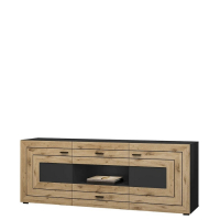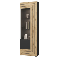Стінка Джейкоб антрацит Сокме – елегантна колекція, в якій виразний дизайн і гармонія контрастів втілюються в сучасному образі затишку, стилю і бездоганного смаку. Корпус меблів виконаний з високоякісного ламінованого ДСП товщиною 16 мм, фасади – з ламінованого ДСП товщиною 16 мм і 22 мм з декоративними вставками з МДФ, в елегантному поєднанні глибокого антрацитового відтінку з натуральною текстурою дуба вікінг, утворюючи гармонійний контраст, де сувора геометрія ліній переплітається з теплом природного дерева, надаючи інтер'єру виразність, затишок і сучасний шарм. Всі торцеві поверхні деталей акуратно облицьовані ПВХ-кромкою товщиною 1 мм, що забезпечує довговічність і акуратний зовнішній вигляд. Родзинкою колекції є витонченість і елегантність; вишуканий баланс холодної виразної строгості з природною натуральністю дерева; прямі лінії і строгі геометричні форми; акуратні тонкі ручки, чорного кольору; міцна основа з невеликими ніжками, що сприяє максимальній стійкості; високоякісна фурнітура - телескопічні напрямні і петлі Hafele, які гарантують плавність і надійність у використанні. Стінка представлена різноманітними елементами: високими і низькими вітринами з вставками із загартованого прозорого скла, які додатково можуть комплектуватися LED-підсвічуванням, підкреслюючи красу декору; ТВ-тумбою для розміщення телевізора та мультимедійної техніки; настінною полицею для організації книг та декоративних елементів. Всі модулі виконані в єдиному стилі, що дозволяє легко поєднувати їх між собою і створювати індивідуальні композиції для вітальні. Джейкоб Сокме – меблі з характером, в яких продуманий кожен штрих, створюючи простір, де сучасний затишок поєднується з бездоганним смаком і кожна деталь відображає витончене почуття стилю. Купити стінку Джейкоб антрацит Сокме можна в нашому інтернет-магазині ProMebli.ua з доставкою по всій Україні. Оплата за готівковий і безготівковий розрахунок, в кредит і розстрочку.
