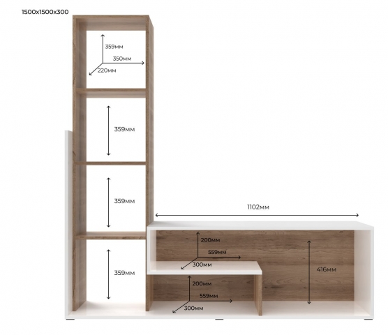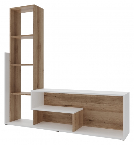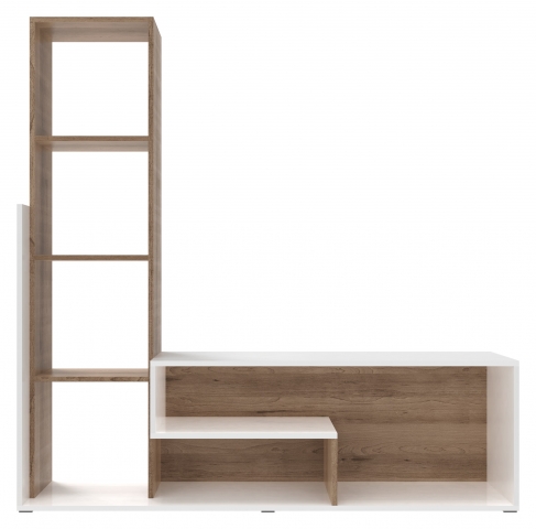 стінка представлена цілісною конструкцією та складається зі: стелажу з відкритими полицями і тумби під телевізор |