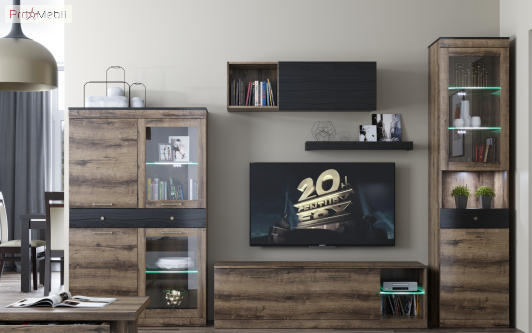 Гарнітур в вітальню Jagger Mebel Bos (Джаггер Меблі Бос) - оригінальний набір меблів з останніми тенденціями в дизайні від фабрики Mebel Bos, для облаштування сучасної вітальні. Корпус і фасадні частини виготовлені з якісного ламінованого ДСП, в чудовому поєднанні легкого древесного малюнка «дуб монастирський» з чорними вставками декору. Меблі Джаггер Mebel Bos привертають увагу своїм стилем; оригінальним поєднанням кольорів; дизайнерськими металевими ручками під бронзу двох видів; фірмовими комплектуючими: завіси з функцією тихого закриття і кульковими направляючими повного висування забезпечують максимальний комфорт у використанні. В асортимент гарнітуру ввійшли: вітрини різних розмірів, які додатково можуть комплектуватися led-підсвічуванням; тумба ТВ; підвісна поличка та шафка. Всі модулі можна комбінувати один з одним в будь-якої конфігурації, створюючи індивідуальний інтер'єр в своєму будинку. Колекція Джаггер Меблі Бос об'єднає ритм повсякденного життя з домашнім затишком, створюючи новий подих свіжості в атмосфері Вашого будинку. Купити меблі Jagger Mebel Bos можна в нашому інтернет-магазині ProMebli.ua з доставкою по всій Україні. Оплата за готівковий і безготівковий розрахунок, в кредит, розстрочку або оплату частинами від ПриватБанк.