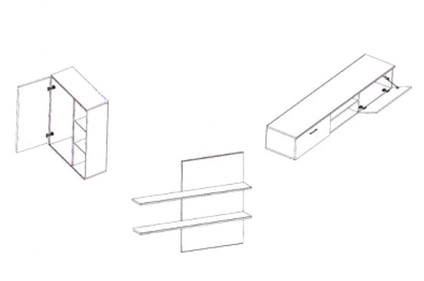 - тумба під телевізор - 1 шт. - вис./шир./гл. - 30/200/40,5 см, дві відкриті ніші, двое відкидних дверцят;