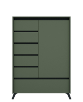 Стінка Лаундж зелений димчастий ВМК (БРВ) - чудове втілення сучасного мінімалізму і витонченого стилю, де кожен елемент створено з бездоганним смаком, продумано до дрібниць, сповнено шляхетною естетикою, яка дарує вітальні непередаване відчуття гармонії, глибини і чарівності природної зелені. Корпус виготовлено з міцного ламінованого ДСП товщиною 16 мм, фасади виготовлено з міцного ламінованого ДСП товщиною 16 мм із декоративними планками з МДФ товщиною 18 мм, у виразному відтінку «зелений димчастий», що вишукано поєднується з «чорними» акцентами, надаючи інтер'єру сучасний ритм і витончену природну глибину, наповнюючи простір спокоєм, стилем і відчуттям гармонії. Стінка привертає увагу втіленням стриманої елегантності, в якій кожна деталь продумана до досконалості; вертикальними декоративними вставками з тонкою текстурою, елегантно інтегрованою у фасади, додаючи глибини та ритму до композиції; поєднанням двох варіантів відчинення: на одних фасадах використовують плоскі ручки, вбудовані у край, а на інших вони повністю відсутні, замінені елегантними фрезерованими виїмками, що додає фасадам особливої виразності та витонченості форм; високими похилими ніжками з міцного пластику, які надають конструкції легкості, акцентуючи її сучасні лінії, водночас забезпечуючи чудову стійкість; якісною фурнітурою, що забезпечує м'якість і плавність у використанні. Стінка містить: ТВ-тумбу з відкритими і закритими секціями для зберігання медіапристроїв і аксесуарів, місткий високий комод з різними відділеннями, які ідеально підходять як для одягу, так і для текстилю або документів, а також вишукана вітрина, що перетворюють вашу колекцію на справжній витвір мистецтва. Лаундж зелений димчастий ВМК (БРВ) - основа для створення вишуканого, стильного і гармонійного інтер'єру, в якому кожен елемент наповнений природною глибиною, а кожна деталь працює на атмосферу спокою, затишку і витонченого смаку. Купити модульні меблі Лаундж зелений димчастий ВМК (БРВ) можна в нашому інтернет-магазині ProMebli.ua з доставкою по всій Україні. Оплата за готівковий і безготівковий розрахунок, у кредит, розстрочку або оплату частинами від ПриватБанк.