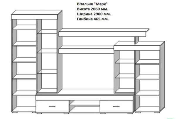 - тумба під телевізор з двома висувними шухлядами і двома відкритими нішами для апаратури;