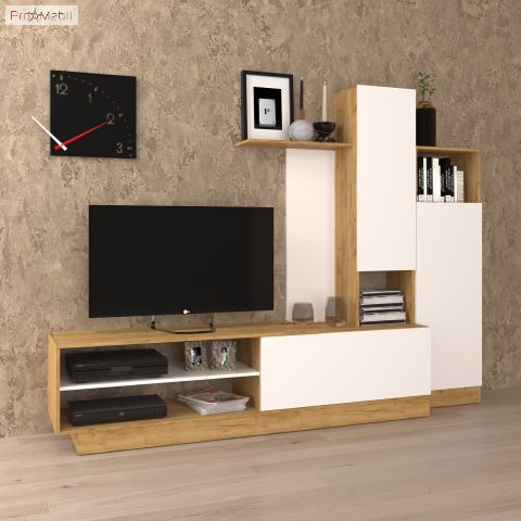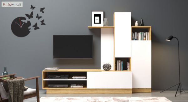 Стенка Melisa VMV (Мелиса ВМВ) - это оригинальная стенка-гостиная производства фабрики ВМВ Холдинг, станет отличным дополнением гостиной комнаты. Стенка выпускается в сочетании цветов белого и теплого оттенка древесины, и благодаря такому сочетанию выглядит уютно и стильно одновременно. Корпус и фасады изготовлены из ламинированного ДСП толщиной 16 мм фабрики Kronospan. Гостиная Мелиса VMV продается цельной конструкцией и состоит из следующих элементов: тумба под телевизор с закрытыми и открытыми отделениями, а также пеналов, которые позволят скрыть необходимые вещи для хранения. Коллекция Melisa VMV характеризуется асимметричным размещением, отсутствием ручек, их роль выполняет торец фасада, качественной и функциональной фурнитурой HAFELE, которая очень удобна в использовании. Гарнитур Мелиса ВМВ станет идеальным дизайнерским решением, для обустройства гостиной комнаты. Купить стенку Мелиса VMV можно в нашем интернет-магазине ProMebli.ua с доставкой по всей Украине. Оплата за наличный и безналичный расчет, в кредит и рассрочку.