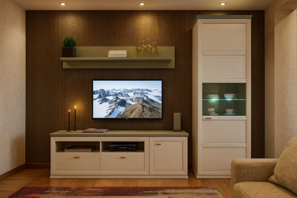 Гарнітур у вітальню Орегон Сокме - елегантний набір меблів в скандинавському стилі від української фабрики Сокме, який ніколи не вийде з моди і завжди залишається на піку популярності, чудово підійде для облаштування інтер'єру вітальні. Корпус виготовляється з якісного ДСП товщиною 16 мм і 22 мм, фасади - з ДСП з накладками з МДФ товщиною 25 мм, в комбінації кольорів світлого - піно ауреліо з більш темним - мадагаскар нельсон. Торцеві поверхні всіх внутрішніх і зовнішніх елементів виробів облицьовані крайкою ABS товщиною 0,5/1 мм, надаючи меблям завершений гарний і доглянутий вигляд. Колекція привертає увагу елегантністю і лаконічністю; ергономічністю і універсальністю; ніжною приємною текстурою деревини; оригінальними металевими ручками, сріблястого кольору; міцною підставою, що сприяє максимальній стійкості; фірмовими комплектуючими: напрямними прихованого монтажу з дотягом Hettich і завісами з дотягом GTV Hettich, які забезпечують максимальний комфорт у використанні. Розкішний набір об'єднує в собі різноманітні елементи: вітальню прикрасять вітрина, яка має полиці з прозорого загартованого скла і комплектуються енергозберігаючим світлодіодним підсвічуванням, оригінальна ТВ - тумба і чарівна підвісна полиця. Всі елементи з модульної системи гармонійно поєднуються один з одним, тому, комбінуючи різні елементи серії Ви зможете створити унікальні меблеві композиції. Меблі Орегон Сокме допоможе створити затишний і функціональний інтер'єр, підкресливши Вашу індивідуальність. Купити меблі Орегон Сокме можна в нашому інтернет-магазині ProMebli.ua з доставкою по всій Україні. Оплата за готівковий і безготівковий розрахунок, в кредит і розстрочку.