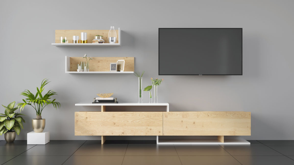 - тумба під телевізор - 1 шт. вис./шир./гл. - 46/200/33 см, дві відкриті ніші, два закритих відділення з відкидними дверцятами;