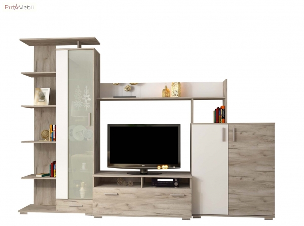 Гарнітур у вітальню Поло Сокме - стильна і сучасна цілісна конструкція від фабрики Сокме, для облаштування сучасної вітальні. Корпус і фасадні частини виготовлені з якісного ламінованого ДСП товщиною 16 мм, в цікавій комбінації світлого деревного відтінку дуб крафт сірий в поєднанні з білим. Торцеві поверхні всіх внутрішніх і зовнішніх елементів виробів облицьовані крайкою ABS товщиною 0,5 мм, надаючи меблям завершений гарний і доглянутий вигляд. Гарнітур привертає увагу елегантним мінімалістичним стилем; поєднанням двох відтінків; простими прямокутними формами; асиметричністю; довгастими пластиковими ручками; пластиковими ніжками; фірмовими комплектуючими: телескопічними напрямними і завісами без дотягу, які забезпечують максимальний комфорт у використанні.