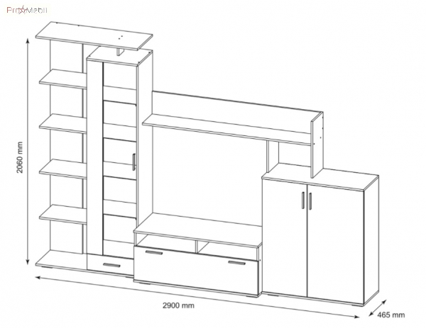 Цей меблевий комплект складається з наступних модулів: