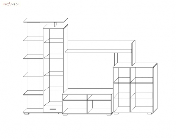 - стелаж з комбінованими полицями - відкритими і закритими і однією висувною шухлядою;