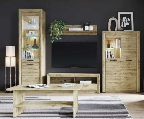 Стінка Sapori Mebel Bos (Сапорі Меблі Бос) - це чарівний набір меблів від фабрики Mebel Bos, в елегантному та стильному рішенні, додасть багатство та шарм інтер'єру вітальні. Корпус та фасадні частини виготовляються з якісного ламінованого ДСП з декоративними планками з МДФ, у теплому дерев'яному відтінку "дуб наварра". Колекція зачарує Вас своїм дизайном; простими формами; дивовижним теплим кольоровим виконанням; декоративними рамами по периметру фасадів, надаючи масивності та елегантності; злегка вигнутими металевими ручками чорного кольору; стійкими, непомітними пластиковими ніжками; фірмовими комплектуючими: кульковими напрямними повного висування та петлями, які забезпечують максимальний комфорт у використанні. Стінка складається з: шикарних вітрин, які додатково можуть комплектуватися led-підсвічуванням полиць, виразної ТВ тумби та підвісної полички. Всі модулі можна поєднувати один з одним у будь-якій конфігурації, створюючи індивідуальний інтер'єр у своєму будинку. Меблі Сапорі Меблі Бос, безперечно, створять спокійну, гармонійну атмосферу, яка привнесе в інтер'єр почуття розслабленості та затишку. Придбати меблі Sapori Mebel Bos можна у нашому інтернет-магазині ProMebli.ua з доставкою по всій Україні. Оплата за готівковий та безготівковий розрахунок, у кредит, розстрочку чи оплату частинами від ПриватБанк.