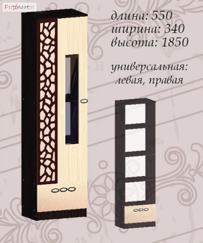 Витрина: выс. 185 см, шир. 55 см, гл. 34 см