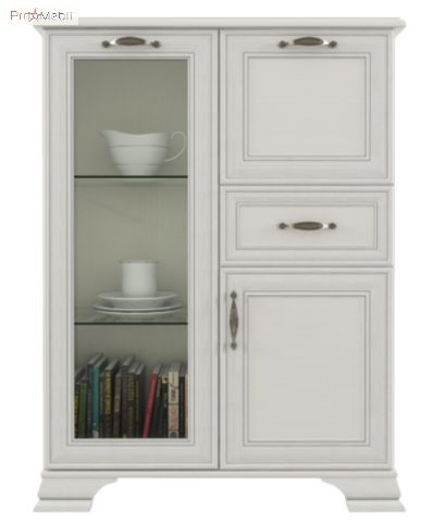 Гарнітур у вітальню Tiffany Mebel Bos (Тіффані Меблі Бос) - вражаюча, непідвладна часу і завжди модна колекція, для облаштування вітальні. Корпус і фасадні частини виготовляються з високоякісного ламінованого ДСП з елементами з МДФ в ніжному відтінку вудлайн крем зі структурою, що імітує деревину. Торцеві поверхні всіх внутрішніх і зовнішніх елементів виробів облицьовані крайкою ABS, надаючи меблям завершений гарний і доглянутий вигляд. Колекція привертає увагу вишуканим, продуманим до дрібниць дизайном; світлим відтінком зі структурою деревини; витонченими рамковими фасадами з блискучою патиною; масивними декоративними карнизами, що прикрашають верх виробів; якісними металевими ручками сріблястого кольору; дизайнерськими ніжками декоративної форми з МДФ; фірмовими комплектуючими: накладні завіси з дотягом GTV Prestige і кулькові направляючі повного висунення забезпечують максимальну зручність у використанні. В асортимент вітальні увійшли: вітрини, які додатково можуть комплектуватися підсвічуванням; тумба ТВ; навісна шафка. Всі модулі можна комбінувати один з одним в будь-якої конфігурації, створюючи індивідуальний інтер'єр в своєму будинку. Тіффані Меблі Бос - це естетична функціональність, яка розкішно доповнить різний за призначенням інтер'єр, створить атмосферу тепла і затишку. Купити меблі Tiffany Mebel Bos можна в нашому інтернет-магазині ProMebli.ua з доставкою по всій Україні. Оплата за готівковий і безготівковий розрахунок, в кредит, розстрочку або оплату частинами від ПриватБанк.