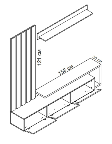 - навісна полиця, надає конструкції завершеного і збалансованого вигляду та ідеально підходить для розміщення декору - книжок, фотографій або інших аксесуарів.