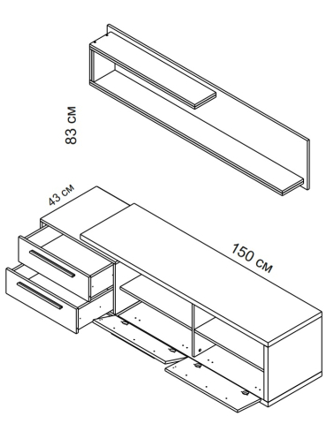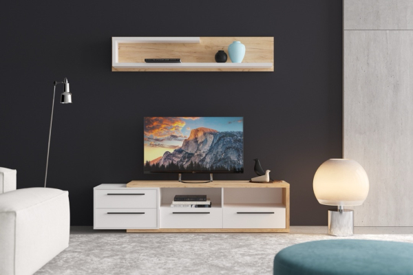 - тумба під телевізор зі зручними відкидними дверцятами і місткими висувними шухлядами для всіх ваших аксесуарів;