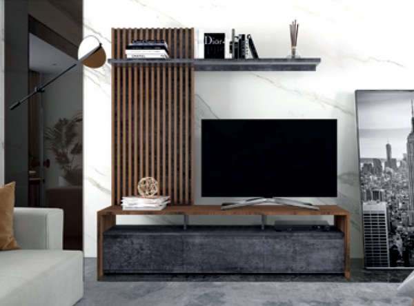 Стінка Нео Gerbor стане ефектним акцентом в інтер'єрі, привносячи тепло і сучасну естетику у вашу вітальню. Виконана з високоякісного ламінованого ДСП товщиною 16 мм, вона має довговічність і стійкість до повсякденних впливів, що робить її прекрасним вибором для тривалого використання. Унікальне поєднання кольорів - натуральний відтінок дуба «дуб ліворно» із текстурою бетонного покриття «бетон темний» - додає інтер'єру свіжості та стилю, створюючи затишну й при цьому актуальну атмосферу. Особливістю дизайну є відсутність ручок, що надає фасадам лаконічності та витонченості. Надійні навісні петлі Hettich забезпечують м'якість і плавність відкривання дверей, додаючи комфорт у повсякденне використання.