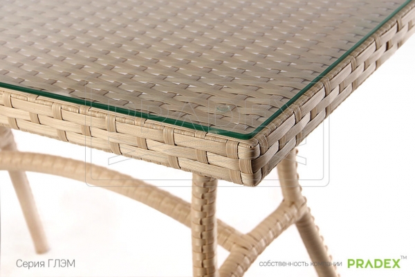 Стіл зі штучного ротанга Глем Pradex стриманий дизайнерський, в сучасній елегантності з футуристичними мотивами, стане ідеальним варіантом для меблювання відкритих веранд, альтанок, зимових садів, літніх терас та присадибних ділянок. При виготовленні меблів використовуються довговічні матеріали: легкий алюмінієвий каркас з порошковим покриттям, який не піддається корозії, заплітається практичним штучним ротангом преміум-класу зі стільницею із тонованого загартованого скла товщиною 8 мм. Штучний ротанг (техно ротанг) – сучасний, екологічно чистий та легкий матеріал, виготовлений із суміші різних полімерів на основі поліетилену. При виготовленні ротангових стрічок використовуються спеціальні добавки, завдяки чому матеріал отримує багато суттєвих переваг в експлуатації: не боїться опадів, перепадів температур, грибків та паразитів, не вигоряє на сонці та зберігає свій первісний вигляд довгі роки. Садові меблі привертають увагу міцністю; комфортністю; легкістю у догляді; зносостійкість; унікальністю моделей, які можна купити в різних варіаціях плетіння, формах, кольорах та розмірах. Глем Pradex стане чудовим доповненням до різних інтер'єрів, починаючи від веранд у заміських будинках і закінчуючи затишними міськими закладами.