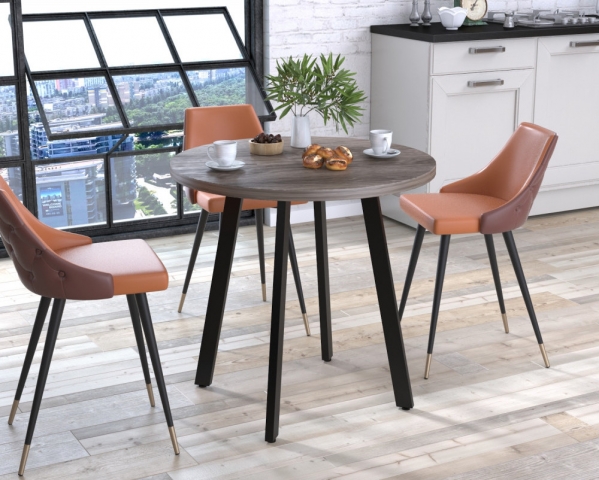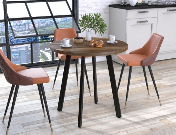Круглий стол Лерой від компанії Loft Design - красива і витончена модель столу. Цей стіл стане чудовим вибором для вашої кухні, обідньої зони в офісі чи кафе. Чудове поєднання стилю та сучасності надають йому елегантного вигляду, який буде вражати в будь-якому інтер'єрі. Стіл Лерой складається з 4-х металевий ніжок і масивної стільниці з ламінованого ДСП. Діаметр стільниці 800 мм. Товщина стільниці – 36 мм. Металевий каркас виготовляється із труби профілем 50*25 мм. Опори оснащені регульованими ніжками на шарнірі, завдяки чому стіл можна виставити на нерівній підлозі. Зверніть увагу, що цей стіл потрібно захищати тривалої дії рідини або високих температур. Рекомендуємо використовувати підставки та підкладки під предмети. Увага: Стільці не входять у комплект зі столом!