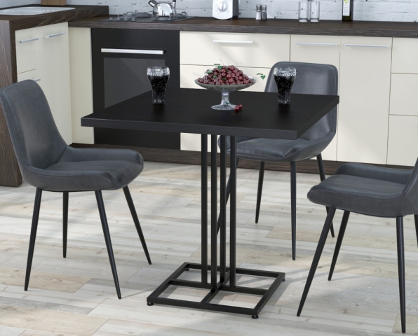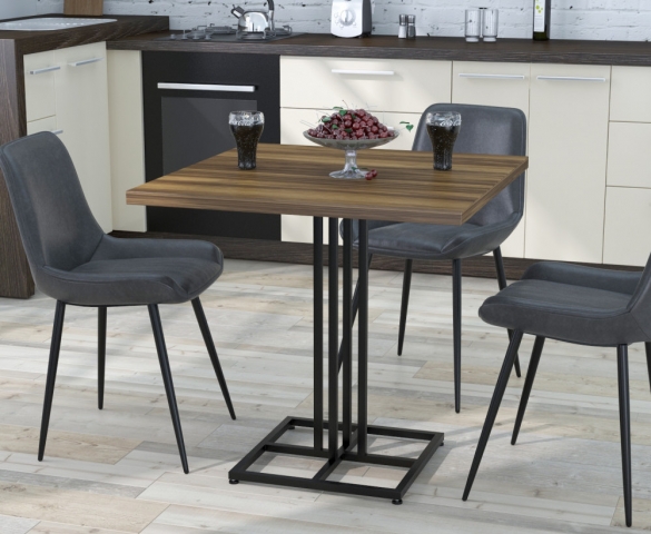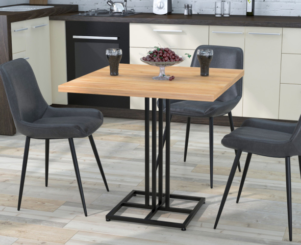 Квадратний обідній стіл Тревор від компанії Loft Design - сучасне та витончене рішення для вашого інтер'єру. Опора столу виконана у незвичайному виконанні, що робить її візуально прозорими. Такий стіл підходить для різноманітних просторів – від сучасних кухонь до затишних кафе. Краса цієї моделі створить неповторну атмосферу для вашої кухні чи кафе. Стільниця виготовлена із здвоєного ламінованого ДСП. Розмір стільниці становлять 80х80 см. Товщина стільниці – 36 мм. Основа столу виготовлена із труби з профілем 20х20 мм. Розміри опори становлять 500х500 мм та висота 700 мм. Вгорі опори є пластина для кріплення стільниці. Опора оснащена ніжками із шарнірами, завдяки чому стіл можна виставити на нерівній підлозі. Зверніть увагу, що цей стіл треба захищати від тривалої дії рідини або високих температур. Рекомендуємо використовувати підставки чи підкладки під предмети. Увага: Стільці не входять у комплект зі столом.