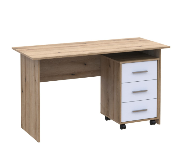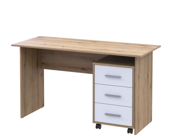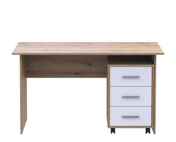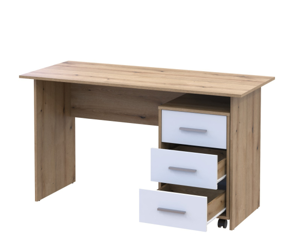 Унікальна модель письмового столу Т3 дуб евок Doros, про який можна сказати, що це два в одному. Стіл містить широку стільницю, яка дозволяє розмістити все необхідне: ноутбук, книги, настільну лампу і т.д., а мобільна тумба на коліщатках з трьома висувними шухлядами допоможуть в організації канцелярського приладдя. Стіл внесе комфорт та затишок, зберігши чистоту та порядок не тільки робочої зони, а й усієї кімнати.