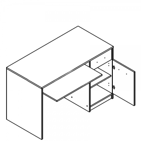 стіл містить полицю для клавіатури, висувну шухляду та закрите відділення з полицею всередині |