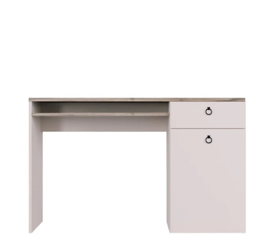 Письмовий стіл BIU120 Сімпл кашемір ВМК (БРВ) — енергійний і виразний, з урбаністичним характером, створений спеціально для облаштування підліткової кімнати, щоб простір відображав індивідуальність, стиль і внутрішню свободу, поєднуючи високу функціональність і візуальну легкість з атмосферою, в якій приємно не тільки вчитися і відпочивати, але і мріяти, творити, бути собою. Письмовий стіл містить полицю для клавіатури, висувний ящик і закрите відділення з полицею всередині, які ідеально підійдуть для зберігання канцелярії, підручників, гаджетів та інших необхідних дрібниць, без яких не обходиться жоден підлітковий день. Стіл привертає увагу з першого погляду — своїм стильним індустріальним виглядом; виразними лініями; лаконічними формами і точною геометрією; кольоровим тандемом, який притягує своєю світлою естетикою: м'який тон кашеміру вишукано поєднується з натуральною текстурою світлого в'яза ліберті, створюючи в інтер'єрі відчуття затишку, легкості і спокійної впевненості; трендовими чорними ручками-кільцями, що додають брутальної графічності; надійною фурнітурою. Сімпл ВМК (БРВ) – ефектне рішення для тих, хто втомився від нудних рішень і хоче перетворити кімнату в яскравий, живий і по-справжньому особистий простір.