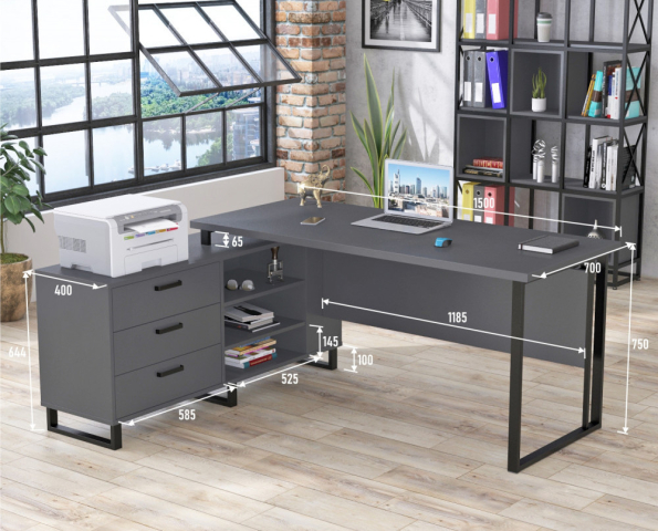 Стіл керівника Нотаріус від компанії Loft Design - це ідеальне поєднання стилю, якості та функціональності. Конструкція складається з металевих опор, основного столу та вбудованої тумби, які виконані з ЛДСП. Опори виготовлені з металевих труб товщиною 50х25 мм. Метал пофарбований у чорний колір, методом порошкового напилення. Завдяки такому покриттю поверхня металу має більш естетичний вигляд і тривалий термін служби. У підставі ніжок встановлені пластикові заглушки. Вони запобігають виникненню потертостей і подряпин на поверхні підлоги. Стільниця виконана зі здвоєного ЛДСП із солідною товщиною в 36 мм. Стіл виконаний у двох кольорах, які матимуть актуальний і гармонійний вигляд у багатьох інтер'єрах. Вбудована тумба має відділення з висувними шухлядами та відкритими полицями. Рекомендуємо берегти стіл від вологи і високих температур, щоб він довгий час зберігав свій первинний зовнішній вигляд.