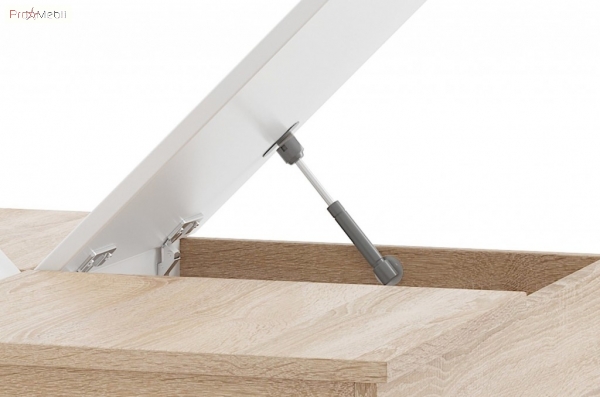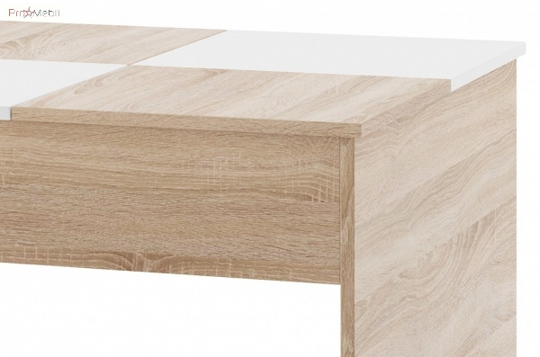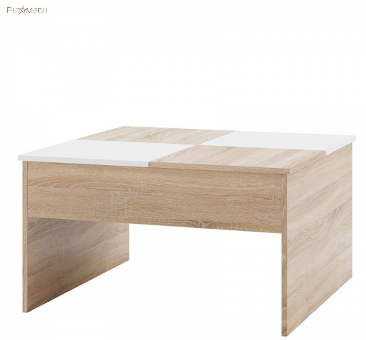 Журнальний столик Лукас ВМВ сучасні стильні меблі, призначені для облаштування вишуканої вітальні. Стіл стане зручним функціональним предметів меблів: широка стільниця і додаткові ніши, дозволяють вільно розмістити підручні речі, журнали, розташувати ноутбук, поставити склянку з водою або чашку кави. Корпус та фасадні частини виготовляються з високоякісного ламінованого ДСП у поєднанні теплого відтінку «дуб сонома» з гладкими «білими» елементами. Столик привертає увагу оригінальним дизайном; деревним малюнком; фірмовими комплектуючими. Журнальний столик є важливою частиною будь-якого домашнього інтер'єру. Він одночасно виконує корисні функції та має важливе естетичне значення.