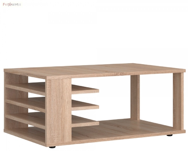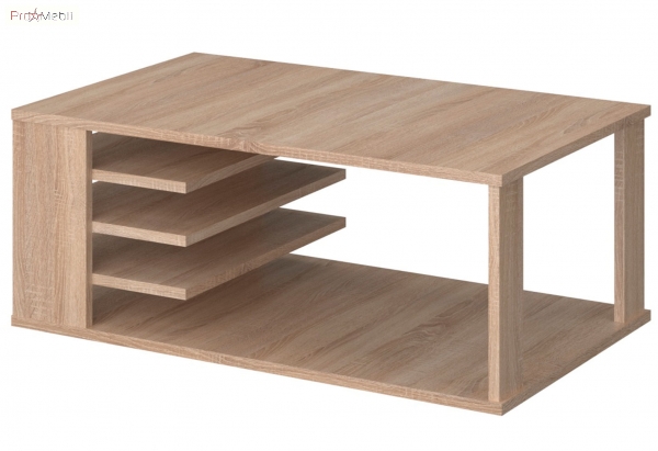 Журнальний столик Морріс ВМВ сучасні стильні меблі, призначені для облаштування вишуканої вітальні. Стіл стане зручним функціональним предметів меблів: широка стільниця і додаткові нижні полиці, дозволяють вільно розмістити підручні речі, журнали, розташувати ноутбук, поставити склянку з водою або чашку кави. Корпус та фасадні частини виготовляються з високоякісного ламінованого ДСП у теплому відтінку «дуб сонома». Столик привертає увагу оригінальним дизайном; деревним малюнком. Журнальний столик є важливою частиною будь-якого домашнього інтер'єру. Він одночасно виконує корисні функції та має важливе естетичне значення.