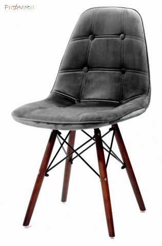 Стілець Alex-W Оксамит сірий B-3 Onder Mebli - зручний стілець зі спинкою. Виготовлений в Малайзії. Виконується в різних кольорах. Стильний, оригінальний стілець з дерев'яними ніжками, м'якою спинкою і сидінням з тканини оксамит. Дерев'яні ноги з'єднані металевими прутами і пофарбовані в горіховий колір. Добре впишеться як в класичний, так і в сучасний інтер'єр.